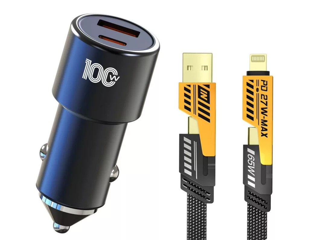 100W-os Gyors töltő USB/USB-C + 65W-os 4 az 1-ben töltő különböző töltőfejekkel - 5A 12-24V