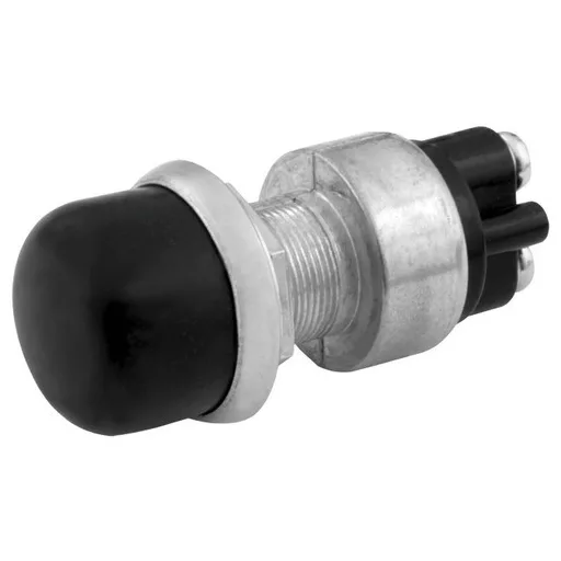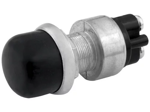Nyomógombos kapcsolóvízálló gumiborítássalBe-Ki60A @ 12V vagy 40A @ 24V2 csavaros érintkezőBeépítési méret Ø 16,5 mm