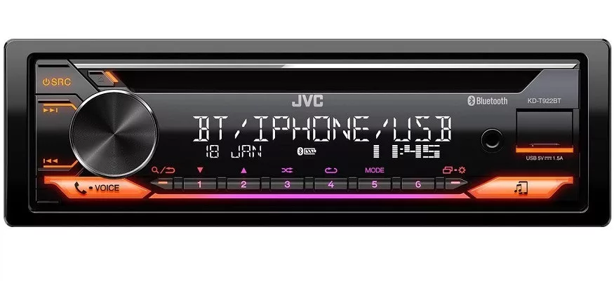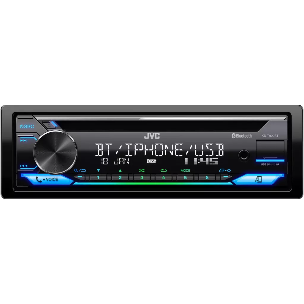 A KD-T922BT autórádió mindazt megadja, amit a JVC név magába foglal: Minõség és innováció egyben. Egyedi megjelenésével, letisztult formavilágával autónknak egyedi megjelenést kölcsönözhet. A készülék képes CD, USB, fogadásra, és az elõlapon helyet kapott egy AUX bemenet is, ezzel szinte minden hanghordozó fogadására képes. USB csatlakozója dokkolóként mûködik, így az okostelefonok akkumulátorai lejátszás közben töltõdnek is. A Music Play applikáció letöltésével a telefonon, tableten tárolt zenék USB porton keresztül egyszerûen lejátszható. Bluetooth-on keresztül telefonhívások fogadhatók és kezdeményezhetők, de kedvenc zeneszámok is lejátszhatók, a JVC Streaming DJ funkciónak köszönhetően akár egyszerre öt telefonról. A rádiózás szerelmesei 18 FM csatornát menthetnek el. 11 elõre programozott hangzáskép közül kiválasztható a legjobban tetszõ, de az egyéni beállítás is megoldható a 13 sávos grafikus hangszínszabályzó segítségével. Automatikus fényerõállítás, gyári kormány-távvezérlésre való elõkészítés, levehetõ elõlap, jól áttekinthetõ kezelõfelület segíti a biztonságos közlekedést.