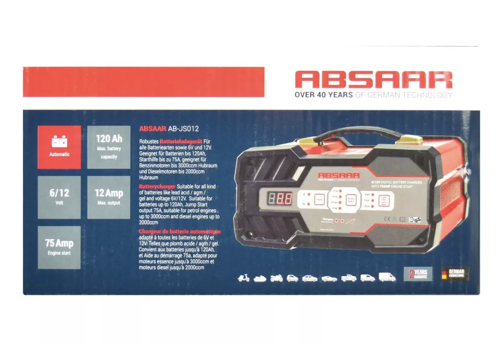 Absaar AB-JS012 Akkumulátor Töltő 12A 6-12V (Bikázó 75A)