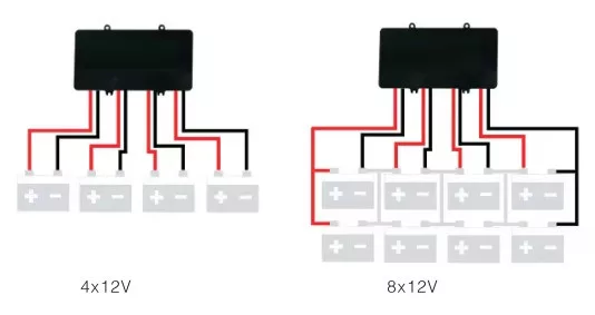 2. Csatlakoztasson több akkumulátort a fenti képen látható módon (korlátlan csatlakozási sorrend).