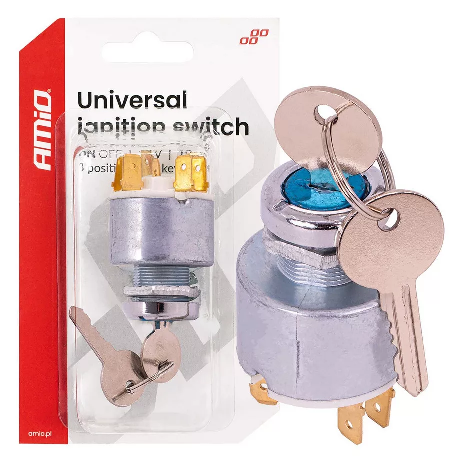 Professzionális univerzális, 3 állású gyújtáskapcsoló 12 V-os jármű elektromos rendszereihez. Lehetővé teszi az elektromos áramkörök szabályozott aktiválását és a jármű áramellátásának biztonságos be- és kikapcsolását. Robusztus kialakítása tartósságot és megbízhatóságot biztosít autóipari környezetben.