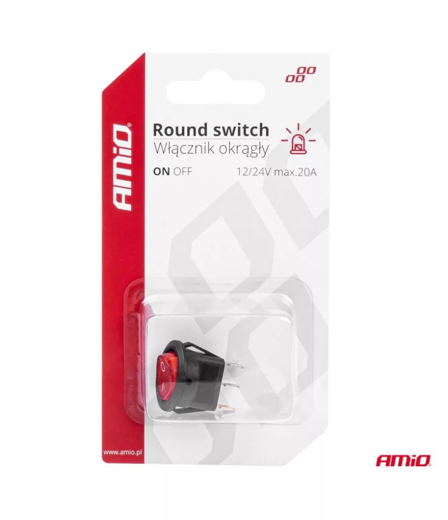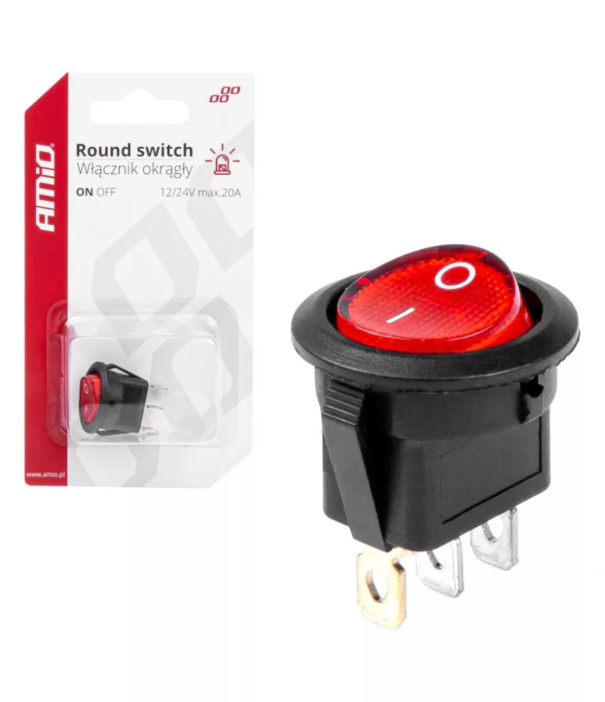 Amio Kétállású Kapcsoló Piros Kerek 12/24V 20A