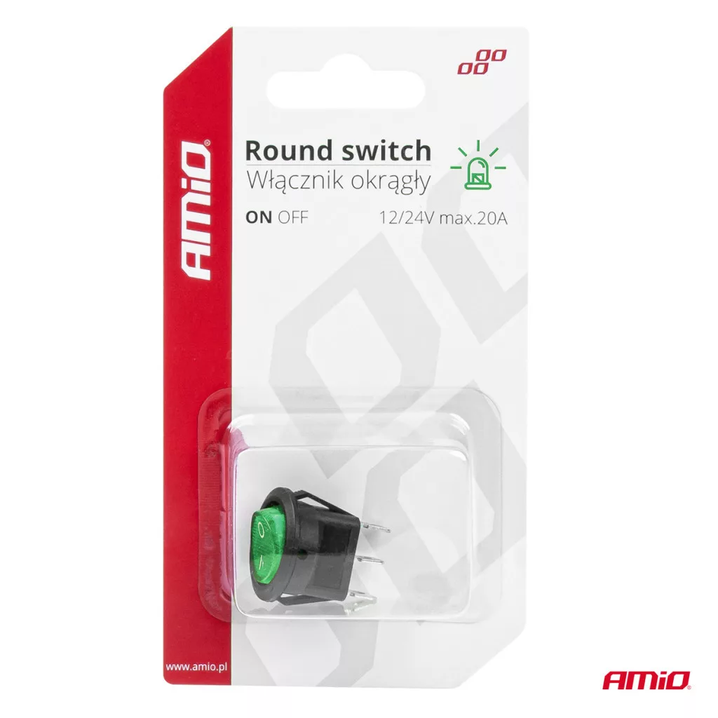 Amio Kétállású Kapcsoló Zöld Kerek 12V/24V 20A