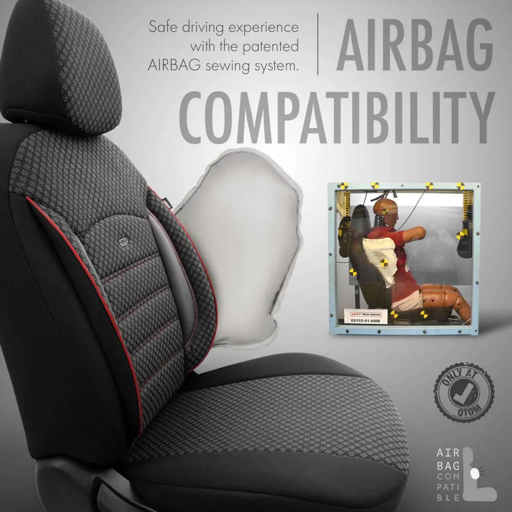 A huzatokon alapfelszereltségként hitelesített LÉGZSÁK varrás található, így alkalmasak olyan autókhoz, amelyekben mindkét oldallégzsák az ülésekben és a normál ülésekben is található. A speciális varrásnak köszönhetően teljesen lefedik az üléseket anélkül, hogy zavarnák a LÉGZSÁKAT.