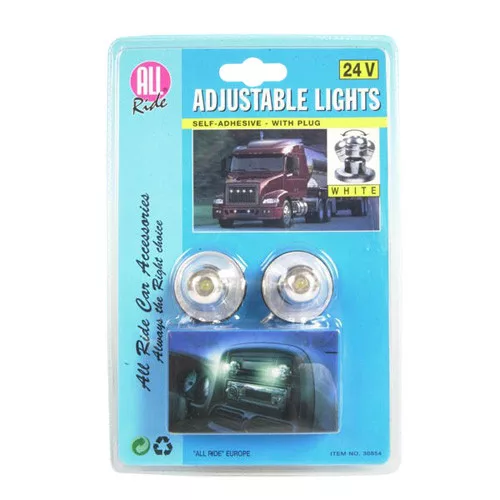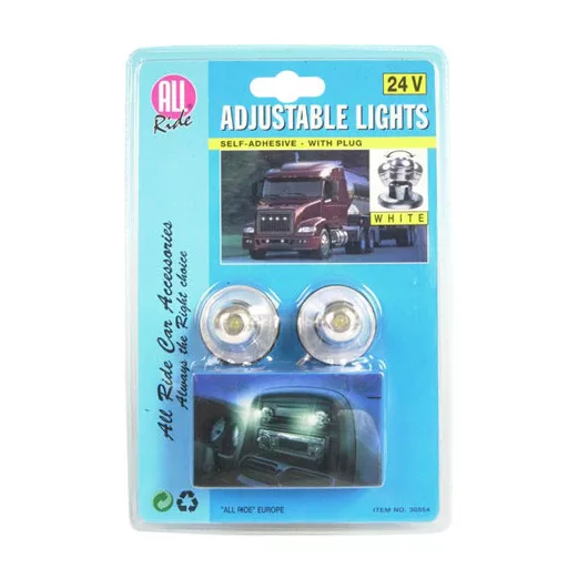 24V-os szivargyújtóról üzemeltethető öntapadós belsővilágítás párban. Állítható talppal.