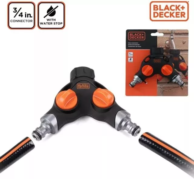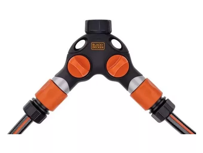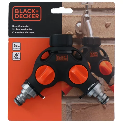 Ez a BLACK+DECKER csaptelep két nyílásra osztja kültéri csapját, pl. tömlőcsatlakozáshoz. Ezt a praktikus vízelosztót úgy tervezték, hogy könnyen illeszkedjen a csaphoz, és kompatibilis a legtöbb 3/4 hüvelykes csapcsatlakozóval. Beépített vízleállítóval rendelkezik, amely leállítja a víz áramlását, ha a csatlakoztatott tömlőt leválasztják, így nem vész el a víz. A csapdarab bal és jobb oldala is zárható, így a vízelosztót tetszés szerint szabályozhatja. Mindkét csap egy tömlőcsatlakozóban végződik.