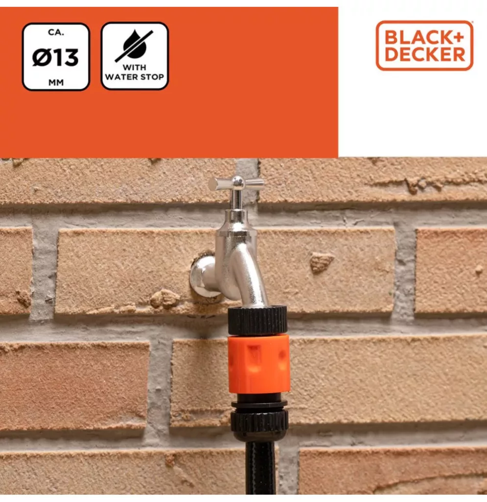 Black & Decker Gyors Tömlőcsatlakozó, Vízstoppos 1/2"