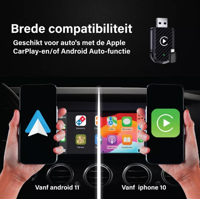 Olyan járművek esetén használható, amelyek gyárilag támogatják a vezetékes Apple CarPlay vagy Android Auto rendszert.