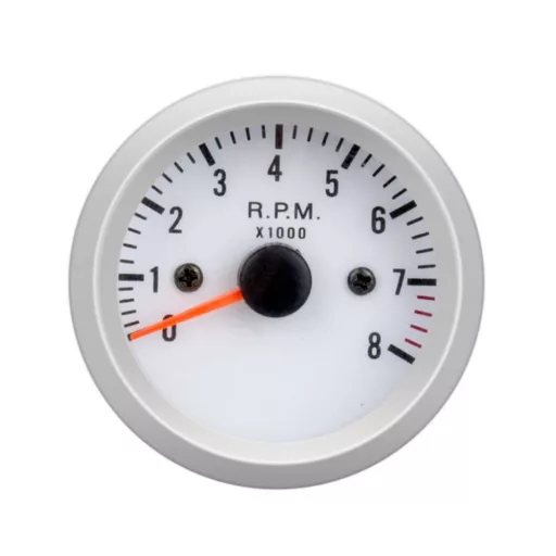Ez a 52 mm-es, fehér hátterű fordulatszámmérő (RPM műszer) megbízható és pontos megoldást kínál a motor fordulatszámának (percenkénti fordulat – RPM) nyomon követésére. Kompakt méretének és jól olvasható kijelzőjének köszönhetően kiválóan alkalmas személyautókba, motorcsónakokba, generátorokra vagy egyéb 12 voltos rendszerekhez.