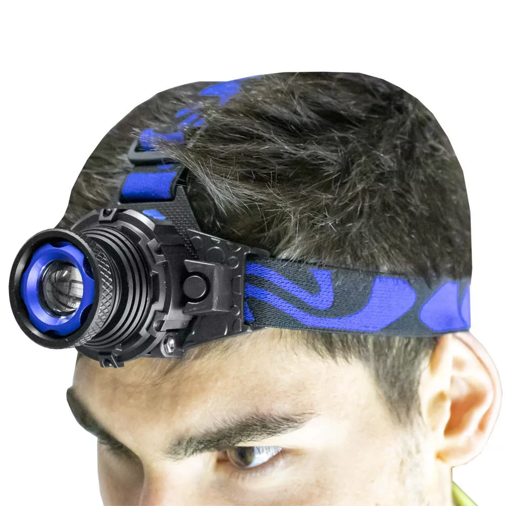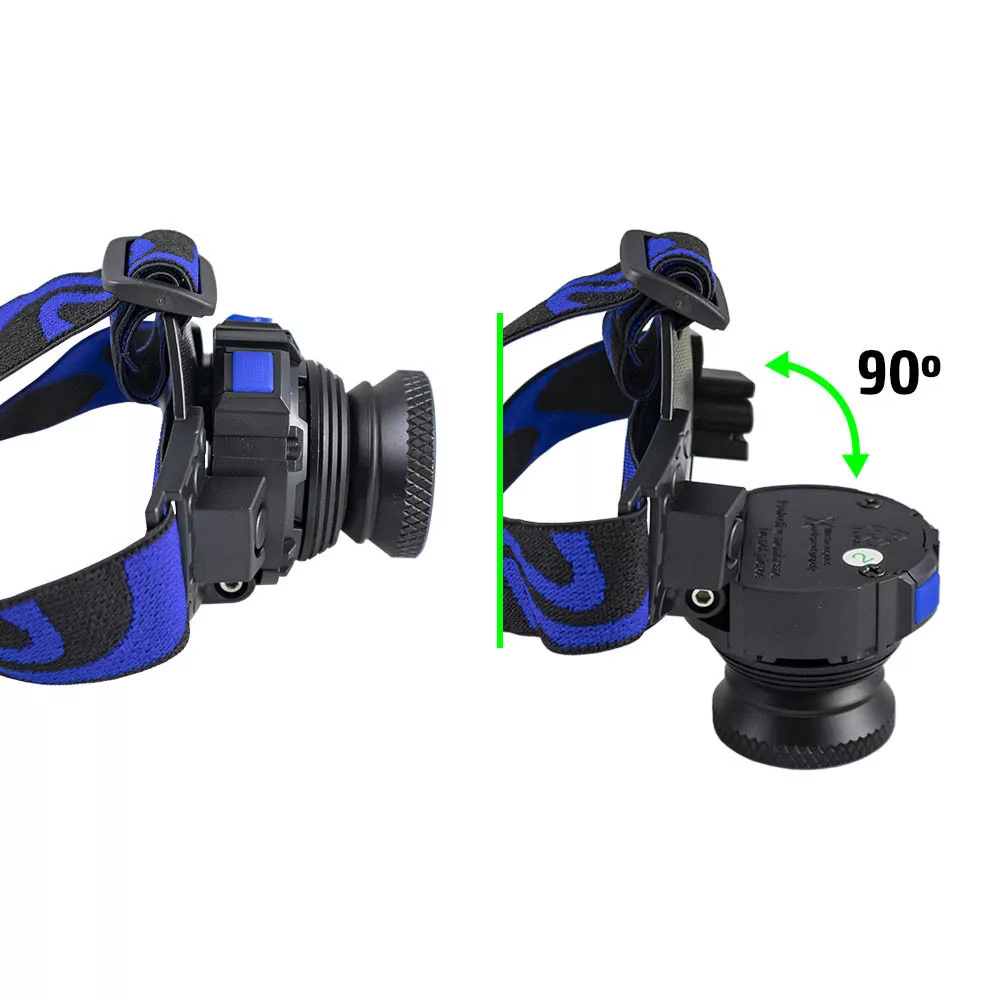 Max 350Lm.Állítható gumi fejpánttal.Led elülső projektor 90°-ig dönthető.2000 mAh Li-ION beépített akkumulátor.4 fénymód: Magas / Alacsony / Vaku / SOS