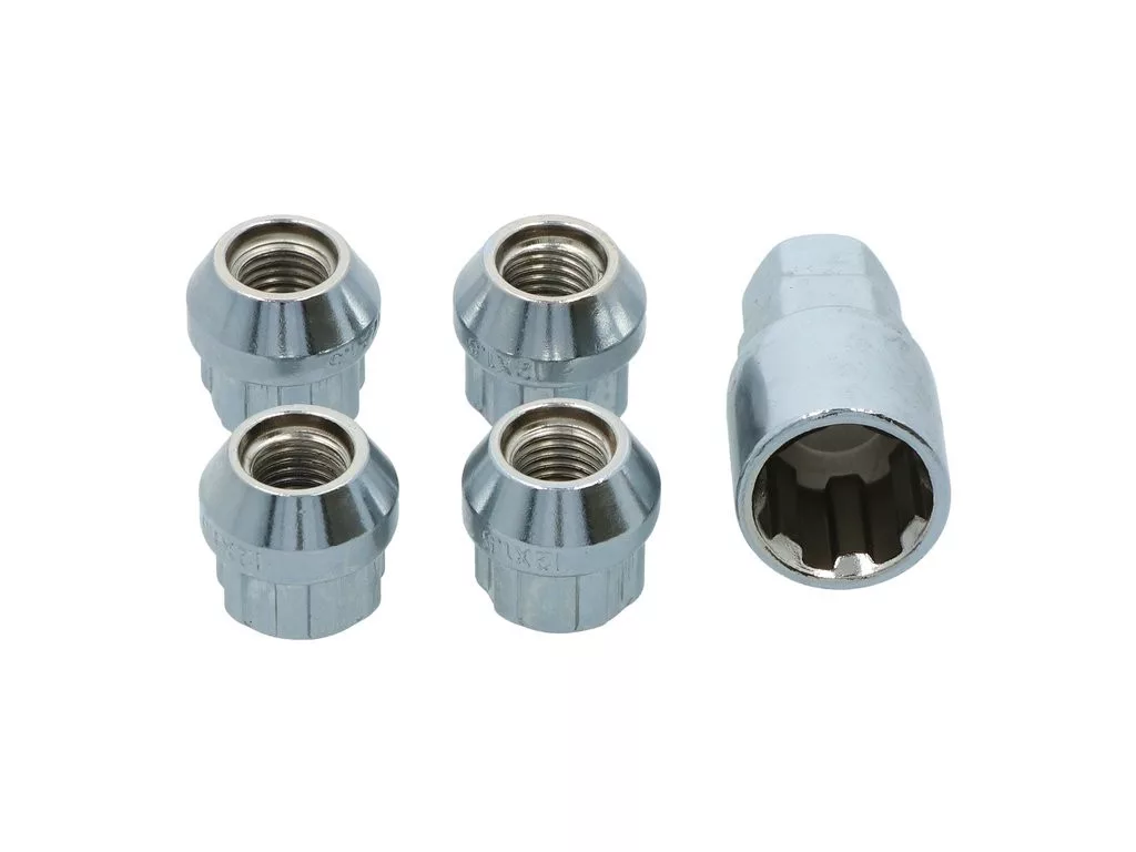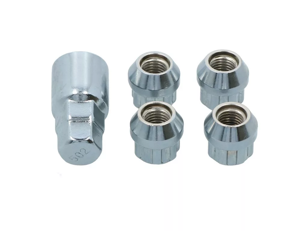 A készlet 4 kerékanya-zárat és egy speciális kulcsot tartalmaz. F típus.