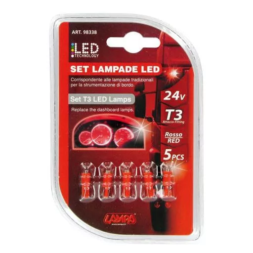 Lampa 24V T3, 1 LED dióda, piros színű, 5db