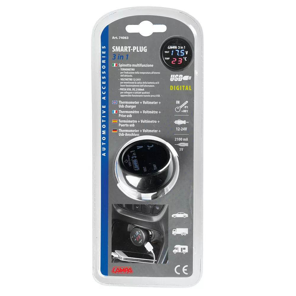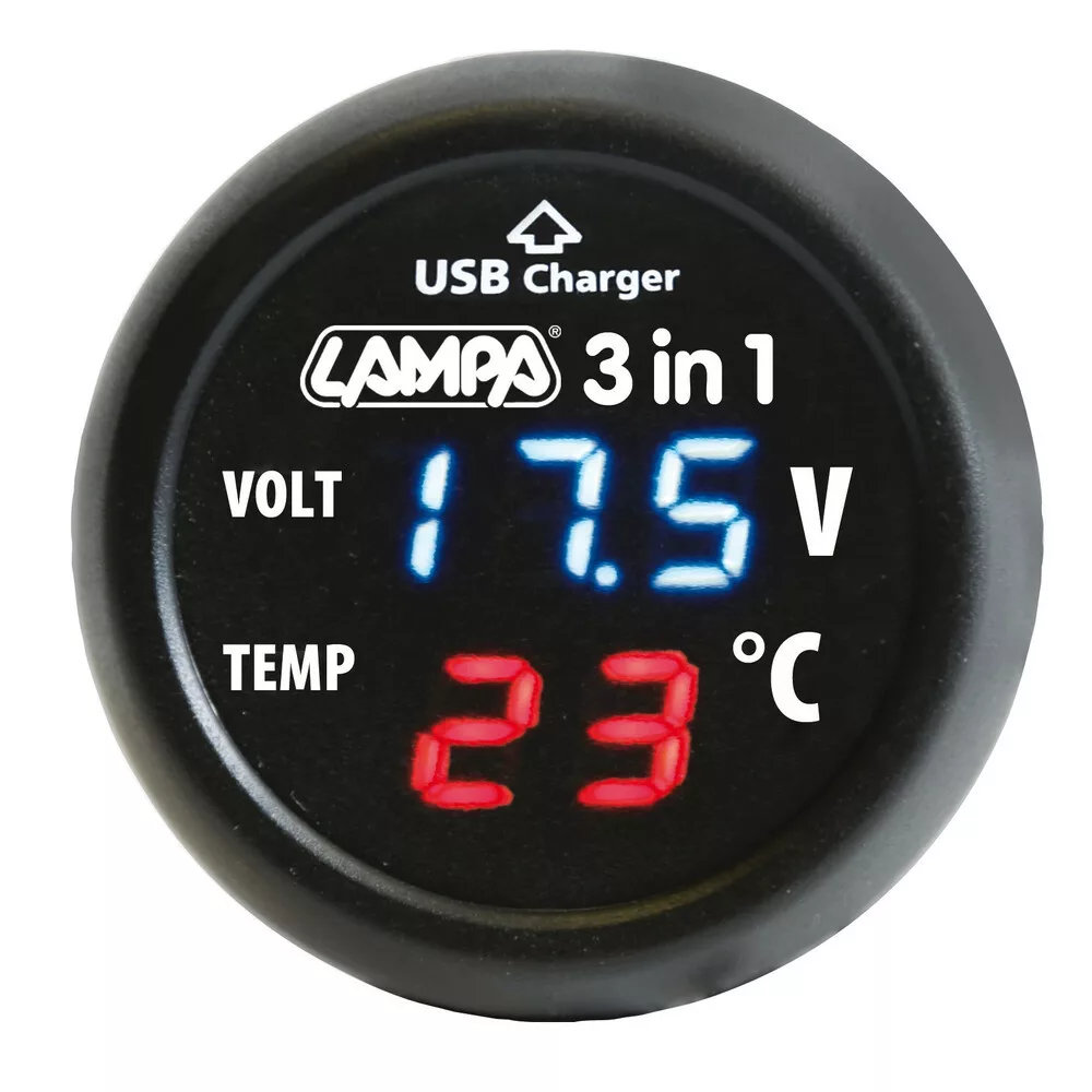 Lampa Akkuteszter 12/24, Smart Hőmérővel, USB Töltő 2,1A