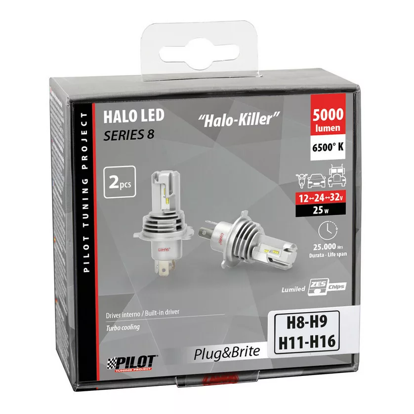 9/32V Halo Led Serie 8 Halo Killer - (H8-H9-H11-H16) - 25W - PGJ19-X - 2 db - Doboz