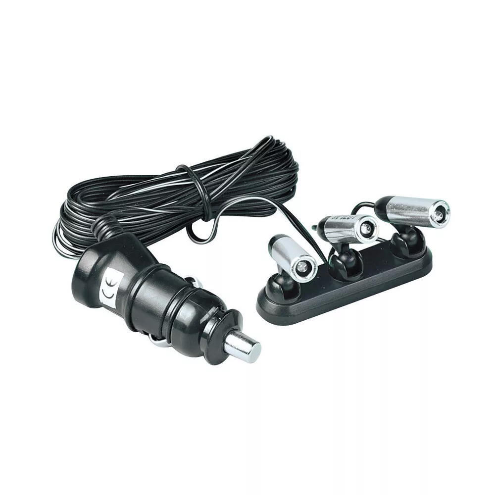 Alumíniumötvözetből készült, nagy fényerejű LED, állítható fénysugár. Öntapadós talp, szivargyújtó aljzathoz csatlakoztatható.