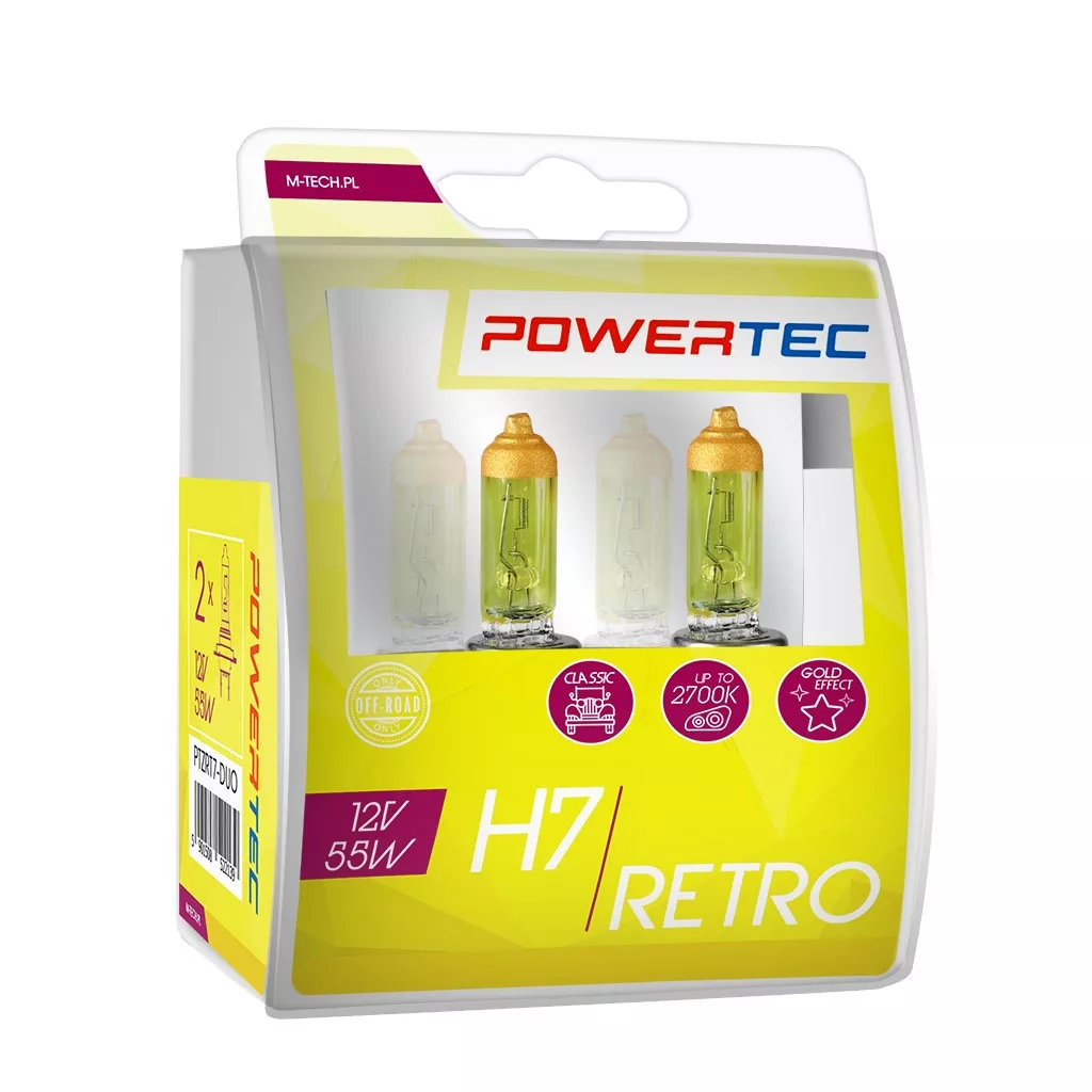 A PowerTec Retro-t a klasszikus, GOLD (aranysárga) világos szín jellemzi, ami növeli az autó vezetési élményét. Ezenkívül az arany árnyalat jobb láthatóságot biztosít ködös időben.