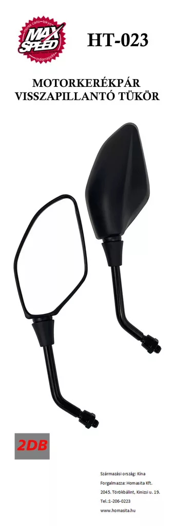 MaxSpeed Tükör Motoros, Fekete, M8, Pár