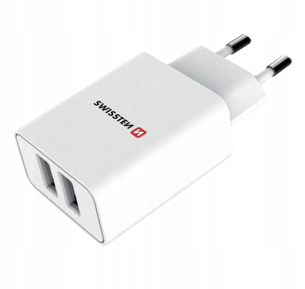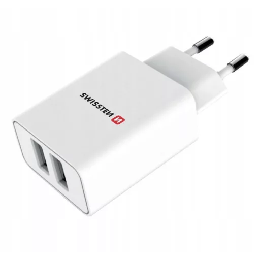 Swissten Hálózati Töltő Adapter, 2 USB Port, Smart IC, 2.1 A, Fehér