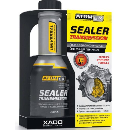 ,Atomex váltóolaj-szivárgás tömítő ,250 ml , ,Olajadalék mechanikus sebességváltókhoz a szivárgások megszüntetésére. , Ez a legújabb generációs szer rendkívül hatékonyan szünteti meg az autók erőátviteli egységeinél megjelenő szivárgást. Speciális alkotói helyreállítják a tömítések rugalmasságát. Ennek eredményeképpen szorosabb a kapcsolat a tömítés és a fém között, az olaj szivárgása megszűnik. , Előnyök: ,• Visszaállítja a tömítések rugalmasságát. ,• Megszünteti a szivárgást. ,• Javítja a tömítés-fém kapcsolatot. ,• Nincs szükség drága szétszerelésre, javításra. ,• Kompatibilis az összes mechanikus erőátviteli berendezéssel. , Használati utasítás: ,Öntsük az adalékot az üzem meleg váltófolyadékba. ,A tömítő hatás 300-500 km megtétele után alakul ki. , Adagolás: ,250 ml adalék 4 liter váltóolajhoz elegendő.