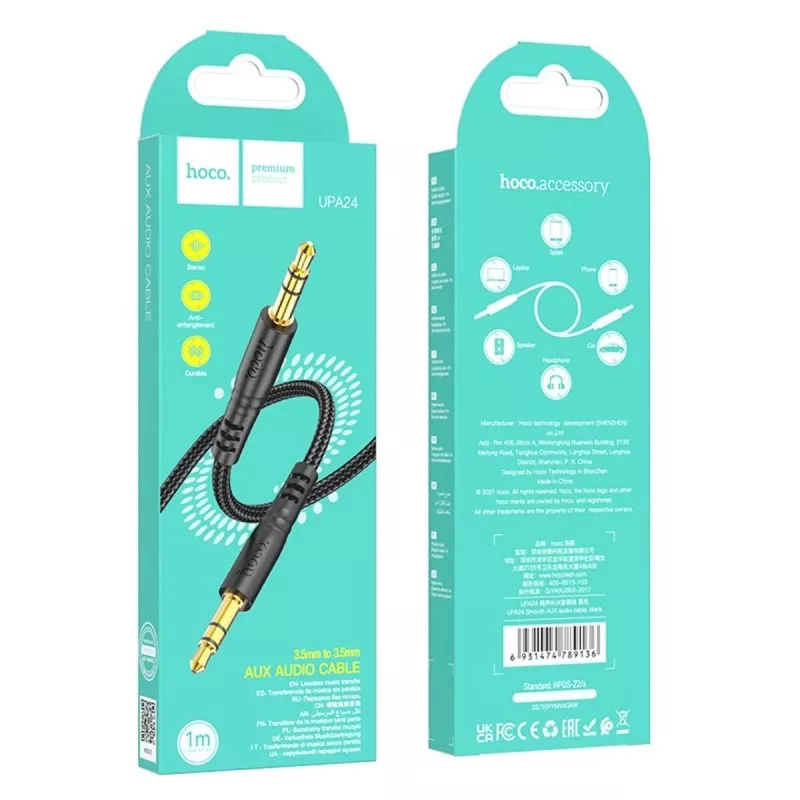 Modern HOCO UPA24 audiokábel. Ideális megoldás hordozható audioeszközök, például okostelefonok, tabletek, MP3- és MP4-lejátszók, autórádiók, hordozható hangszórók csatlakoztatására.