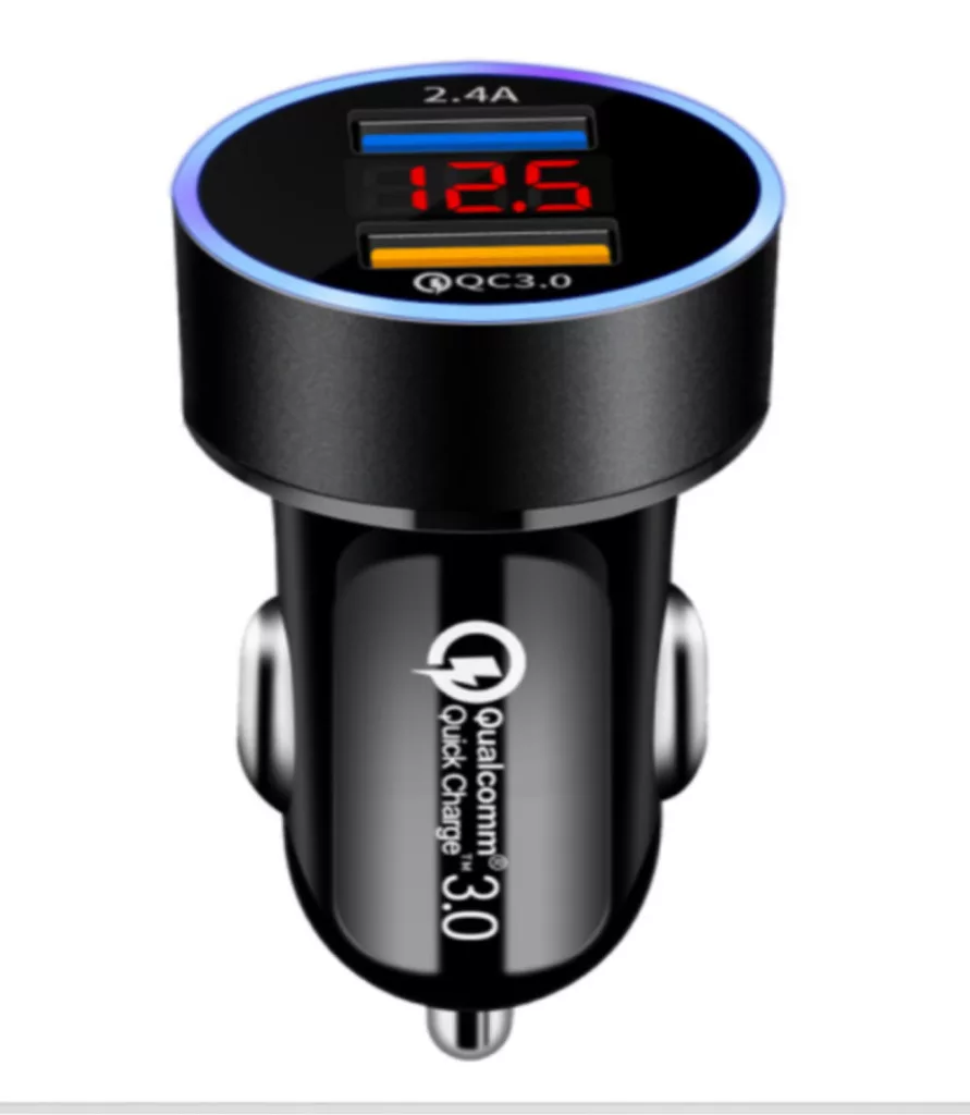 Autós töltő + voltmérő M22 - 2USB - Quick Charge 3.0 - 12/24V