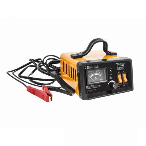 Automata töltő ,fordított polaritás védelem 6V és 12V os akkumulátorokhoz. Közkedvelt akkumulátortöltő! Sokan szeretik a hagyományos kijelzős akkutöltőket. Ez egy modern akkumulátor töltő, hagyományos mutatós kijelzővel. Minden amit tudni kell egy akkutöltőnek. 1 év garancia Az akkumulátort nem szükséges a járműről lecsatlakoztatni a töltési folyamat ideje alatt. Fordított polaritás védelem olvadó biztosítékkal. Mindig csak az akkumulátor által felvett árammal töltenek. Szigetelt testcsipeszek. Ampermérő. Made in Italy