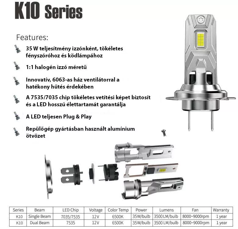 Szerelés: Semmilyen átalakítást nem igényel az autó. Használja úgy, mint a hagyomás halogén izzót 1/1.