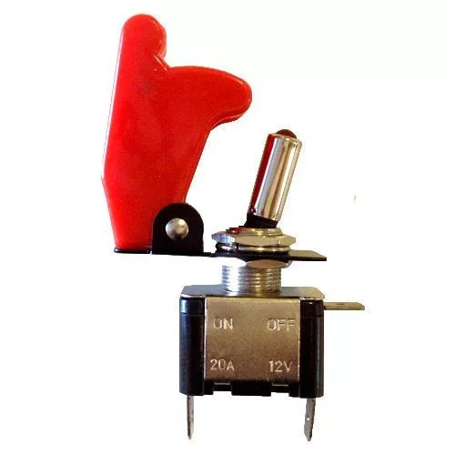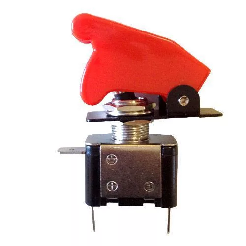 Masszív fém kapcsoló piros fedéllel, a kar végén piros LED visszajelzővel. Kétlábú, kétállású.