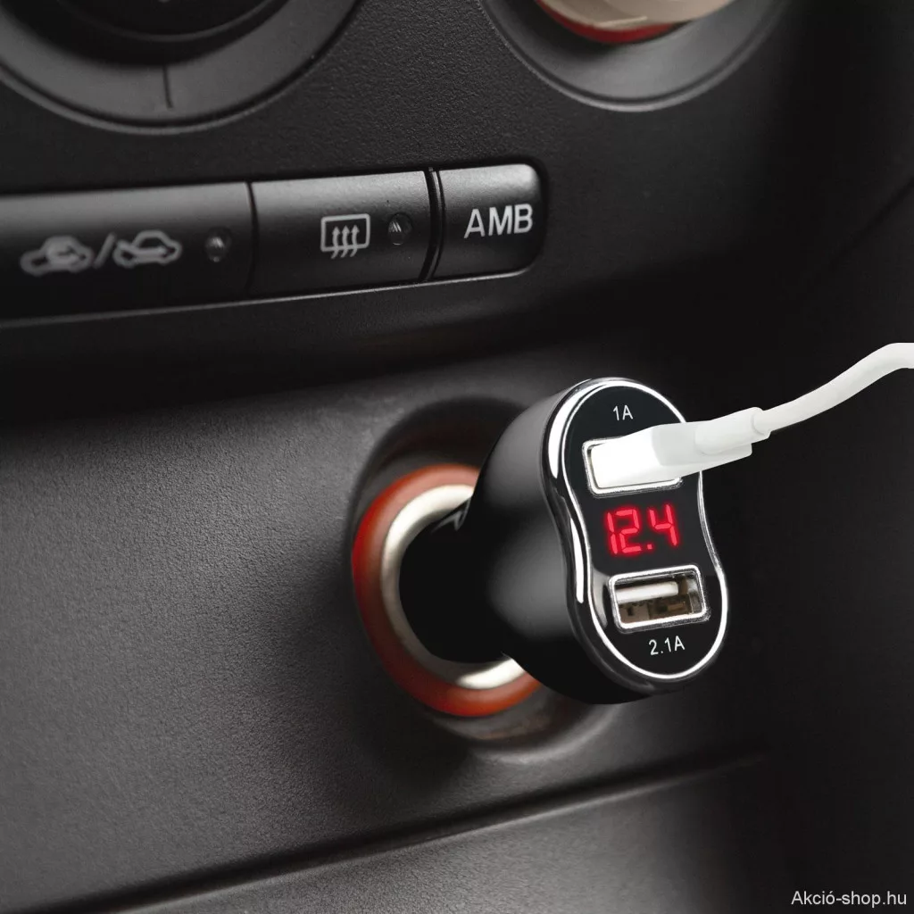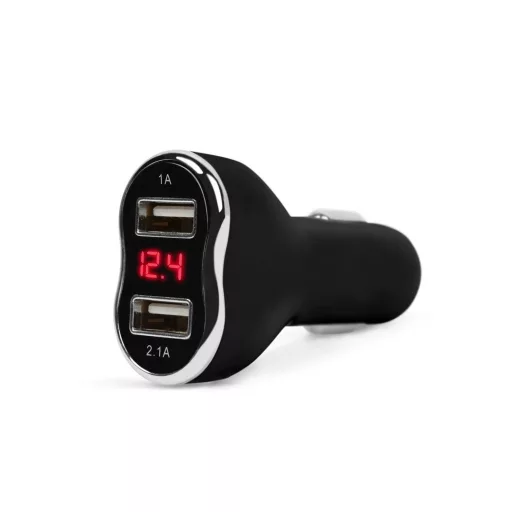 A rejtett, két USB port között lévő, LED kijelző piros színnel mutatja a pillanatnyi feszültséget és áramerősséget. A krómozott perem elegáns megjelenést kölcsönöz, így bármely autó belterében jól mutat. A dupla USB port lehetővé teszi két eszköz egyidejű töltését.