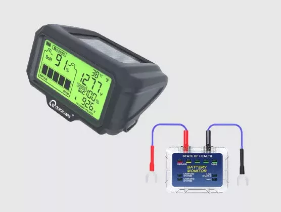 Valós idejű akkumulátor állapotfigyelő, 12V rendszerekhez. Kijelzi a feszültséget, hőmérsékletet, töltöttséget, automatikus riasztás hibánál. Napelemes és USB-C töltés, vezeték nélküli adatkapcsolat.