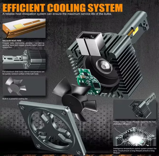 Beépített ventilátor: A LED izzók beépített ventilátorral rendelkeznek, amely folyamatos hűtést biztosít a fényforrások számára, megelőzve a túlmelegedést és növelve az izzók élettartamát.
