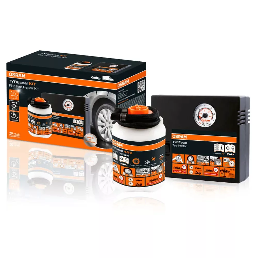 Defektjavító készlet gyári minőségű folyadékkal és kompresszorral Osram