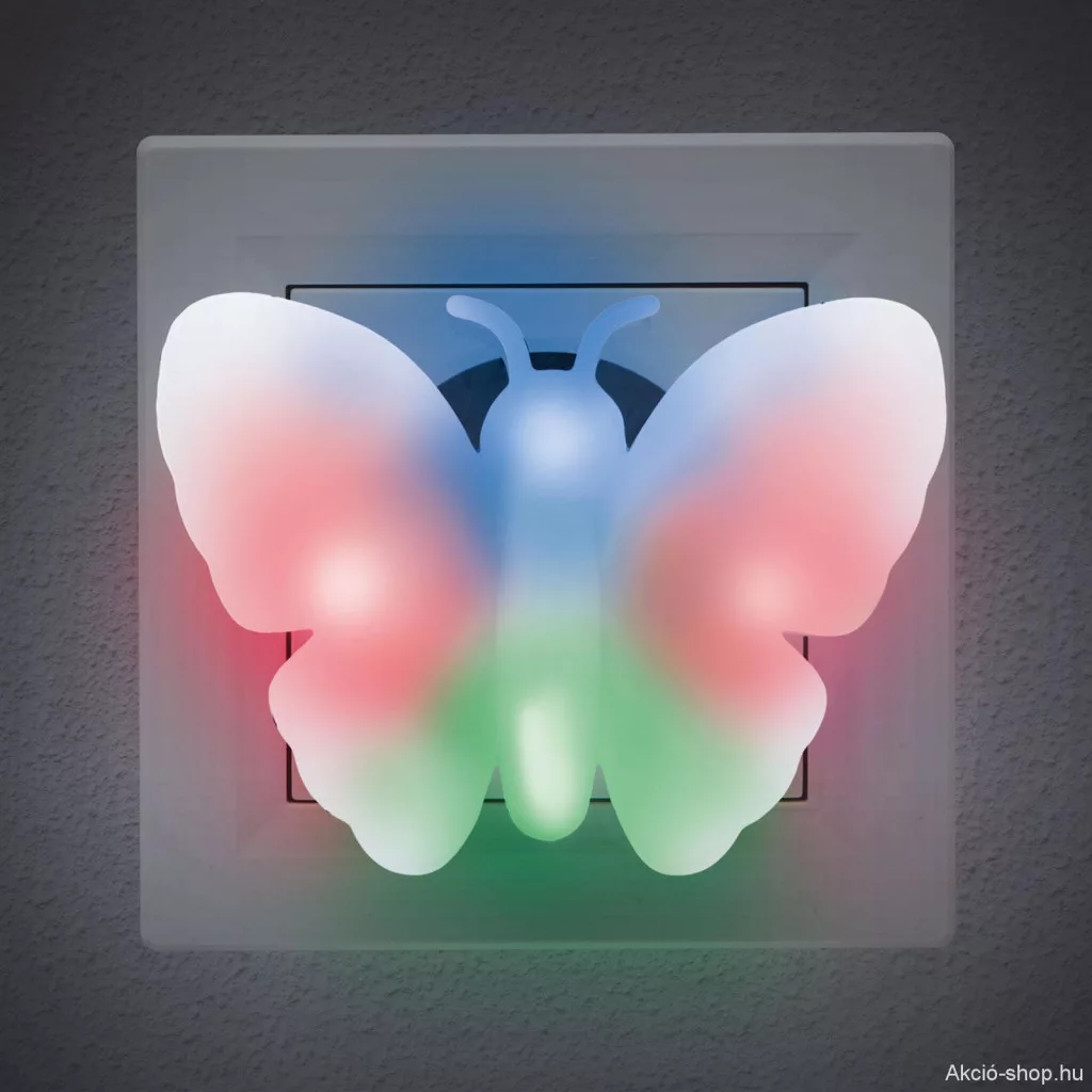 Éjszakai jelzőfény színes pillangó Éjszakai Színes LED irányfény Gyerekszobák édes kis dísze lehet ez a színes LED-es pillangó. Kiváló megoldás azoknak a gyerekeknek, akik éjszaka többször felébrednek vagy félnek a sötétben.