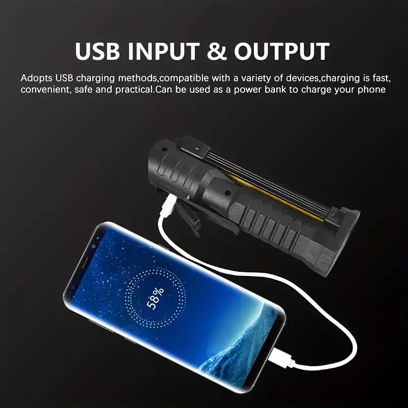 Újratölthető, LED Zseblámpa-Munkalámpa Mágneses. 1200mAh LED elemlámpa állítható szerelő lámpa. Kisebb helyekre is felakasztható, mágnessel rögzíthető led világítás.