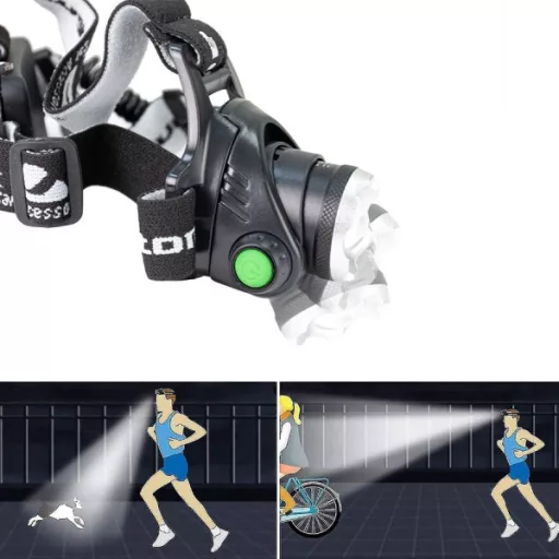 Akkumulátoros tölthető fejlámpa 2 x 18650 Li-ion újratölthető akkumulátorral