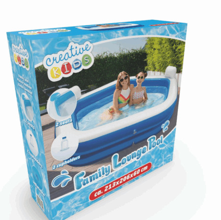 Creative Kids kétszemélyes családi medence fejtámlával és italtartóval. Kényelmes, tartós és könnyen szállítható – tökéletes nyári hűsöléshez.