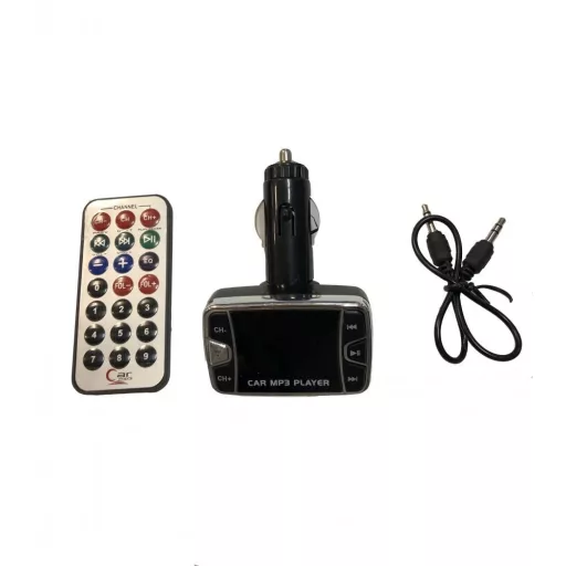 Autós mp3 lejátszó FM transmitter + microSD + pendrive lejátszás, LED kijelző, mappa léptetés funkció. Autós vezeték nélküli mp3 lejátszó, szivargyújtóra csatlakoztatható. Az áramellátást közvetlenül a szivargyújtón keresztül, folyamatos működést biztosít! Hangolja rá meglévő autós rádióját a transmitteren beállított FM frekvenciára és azonnal hallgathatja kedvenc MP3 zenéit az autó hangszóróin keresztül! Nem kell drága autós fejegységbe befektetni, nem kell megbontani a gyári autós rádiót! Előnye továbbá, hogy mobil eszköz akár egyik autóból a másikba viheti magával, valamint nem kell aggódnia hogy feltörik autóját mivel csak egyszerűen kihúzza a szivargyújtóból és viheti magával. FM frekvencia sávot használ (87.5-108mhz) így bármilyen rádióval befogható (nem csak autórádió!) Sötétben is kiválóan látható a kijelző. A távirányító segítségével még egyszerűbb a kezelés (távirányító nélkül is működik). A távirányítón található numerikus gombok (számok 0-9) segítségével könnyedén kikereshető egy konkrét szám. Pl beírja 154 és egyből a 154-es számú mp3 fájlt kezdi el játszani, így nem csak egyesével lehet léptetni hanem azonnal a kiválasztott zeneszámra lehet ugrani. A távirányítón a mappa léptetés gomb segítségével könnyedén ugorhat a következő könyvtár tartalmára! Kb 5 méter hatótávolság. Jellemzők: