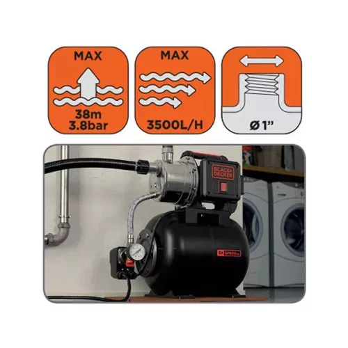 Házi vízmű, 600W 19liter BLACK+DECKER BXGP600PBE - Rozsdamentes acél ház