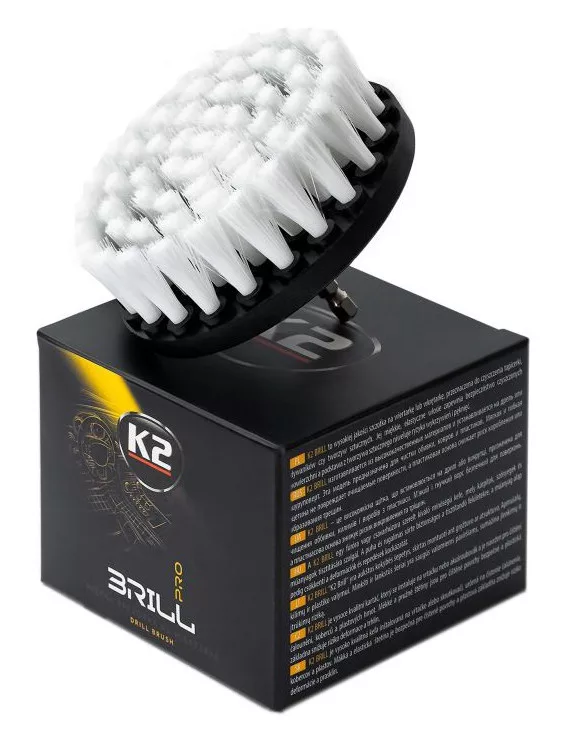 A K2 Brill fúró kefe professzionális, kiváló minőségű kefe kárpit tisztításához. Szerelhető fúróra vagy csavarhúzóra, további adapter használata nélkül. Ez lehetővé teszi az erősen szennyezett felületek gyors és egyszerű tisztítását minimális erőfeszítéssel. Puha, rugalmas, szintetikus sörtékkel van felszerelve, amely biztosítja a tisztított felületek biztonságát. A műanyag alap csökkenti a vetemedés és a repedések kockázatát. Átmérő: 10 cm. Javasoljuk alacsony fordulatszámon használja az elektromos eszközt. A kefék jól használhatóak a háztartás területén is, kiválóan távolítja el a lerakódott szennyeződéseket, vízkövet a legtöbb felületről, például: csempéről, fugából, szőnyegből, kárpitból.