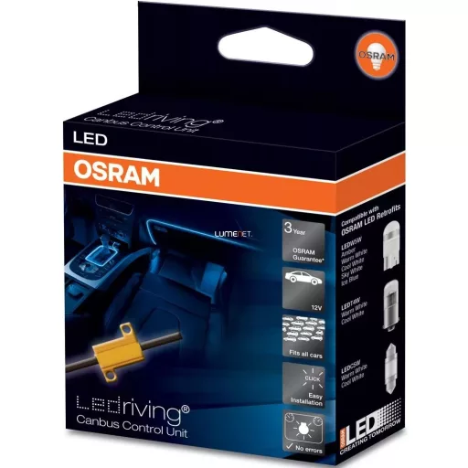 Az Osram CanBus Control Unit ellenállás egység lehetővé teszi a modern LED jelzőizzók üzemszerű működését az autódban. Az Osram CanBus Control Unit biztos megoldás, ha a világítás felügyeleti rendszer hibaként észleli a kisebb teljesítményű LED fényforrást, ha az új LED lámpa villog, nem világít, esetlegesen időnként üzemel csak.