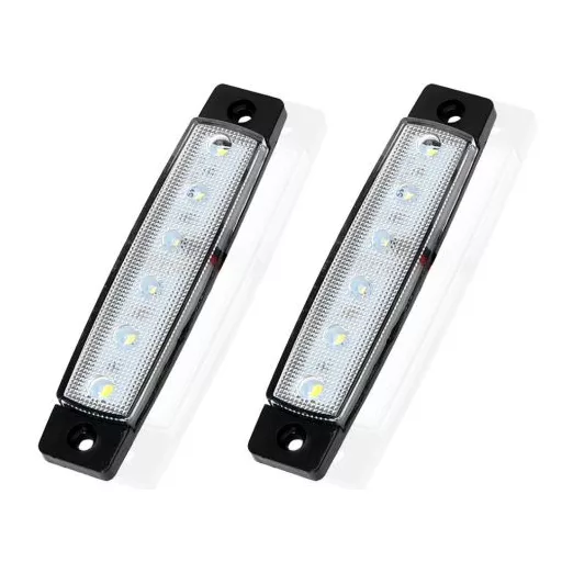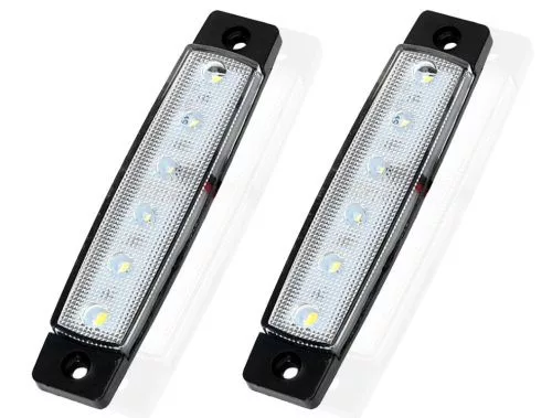 fehér színű szélességjelző 6 LED-del van felszerelve, és E-jelöléssel rendelkezik, ami azt jelenti, hogy megfelel az európai biztonsági előírásoknak. Kifejezetten tervezve 12-24V-os feszültségű rendszerekhez. Ezek az izzók hatékonyan szolgálják a jármű szélességjelzését, javítva ezzel a láthatóságot és a biztonságot. A fehér fény ideális a járművek oldalsó láthatóságának javításához. Könnyen telepíthető és rendkívül megbízható működést nyújt a járműveken. Az ár /2.db ra vonatkozik.
