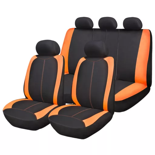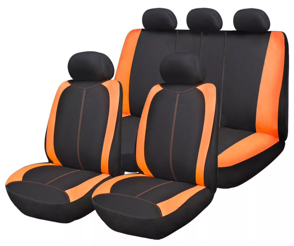 univerzális üléshuzat Narancssárga-fekete 9db-os osztható hátsó ülésekkel. Sportos szabás osztott ülésre is,