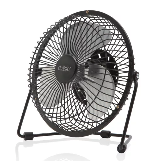 51110 Asztali ventilátor, a nagy ventilátorok kicsinyített mása. Akár autóba, lakóautóba is. Autós USB csatlakozással is használható.